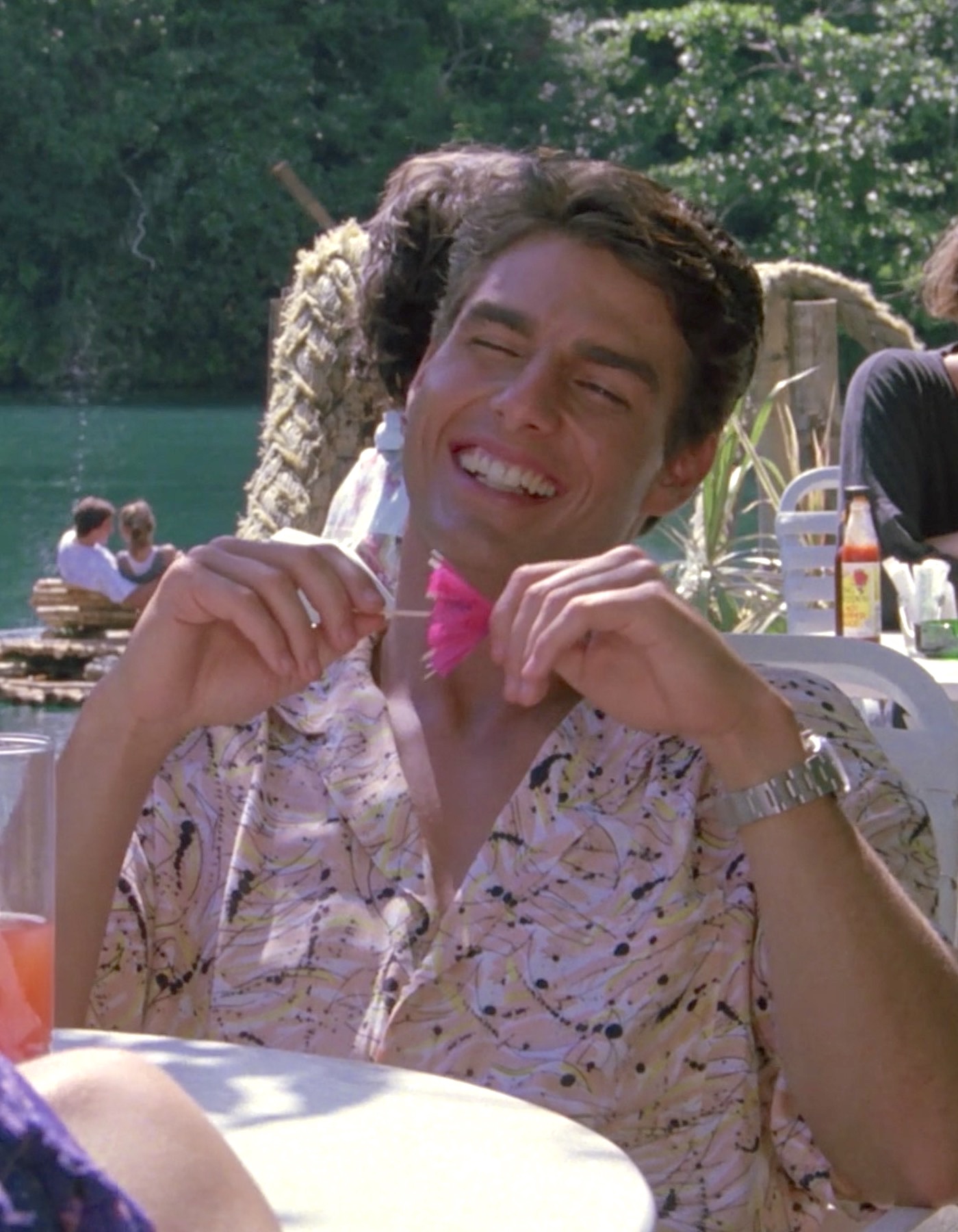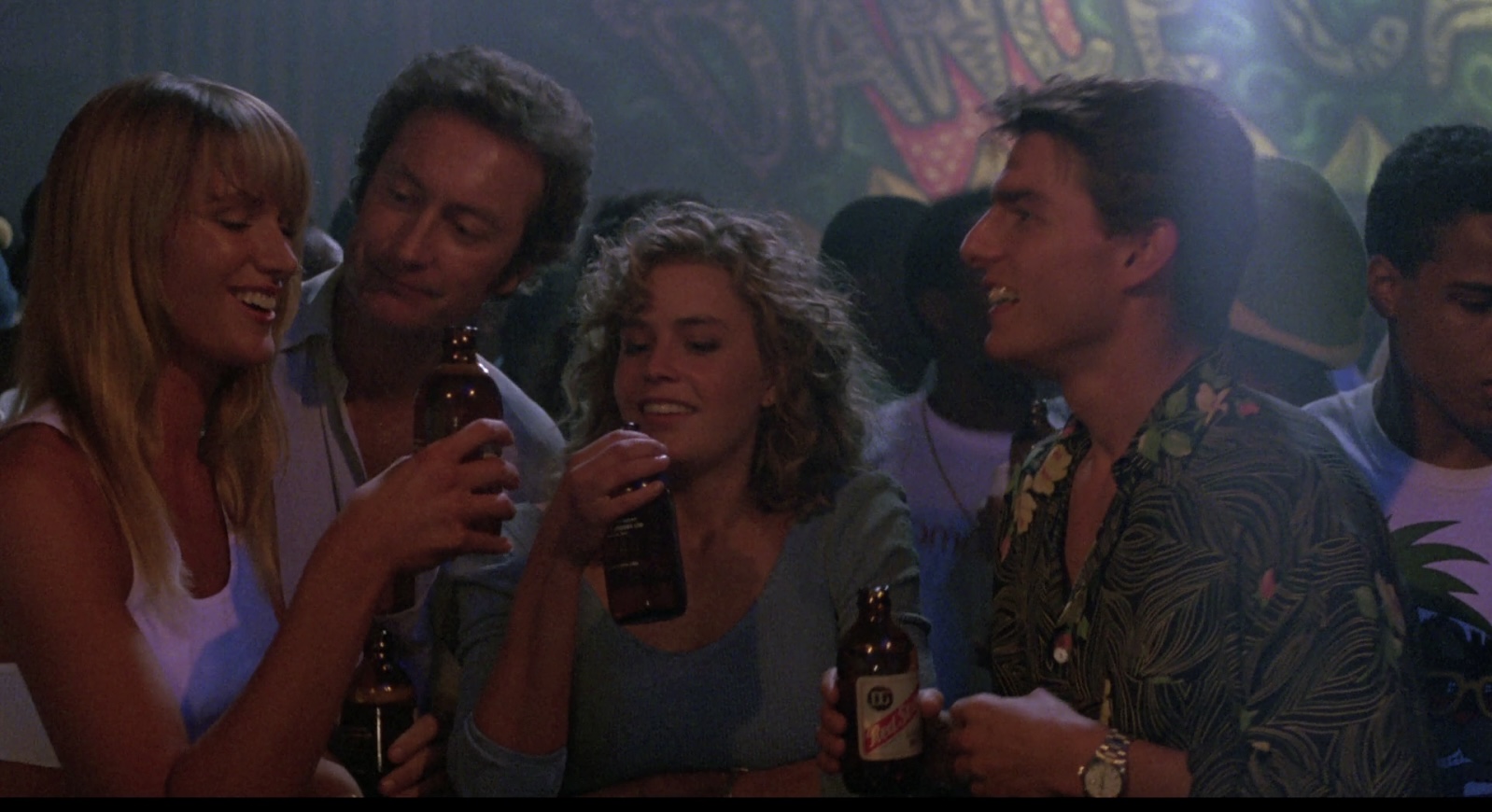 The button-up shirts that Tom Cruise wears as Brian Flanagan—they could have an article by themselves. Who could be responsible for such a thing, you might ask. To which I would reply, Ellen Mirojnick, costume designer extraordinaire. Who is that? Who could that be? Well, believe it or not, you likely know her work. Ellen worked on costume design for Fatal Attraction, Wall Street, Basic Instinct, Speed, Twister, Face/Off, What Women Want, The Chronicles of Riddick, Cloverfield, and more recently, Oppenheimer. Those are just some of the credits Ellen has. Between the art direction (Dan Davis), costuming (Ellen Mirojnick), set design (Hilton Rosemarin), and location work? Cocktail is an 80’s feast for the eyes and if you want to understand the height of 80’s excess and what it contributed to art and fashion, this film is essential viewing.